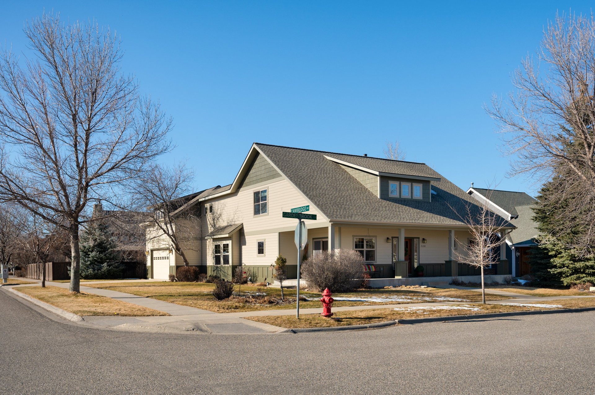 Set in one of Bozeman's most sought-after neighborhoods with a creek nearby and trail system access, this thoughtfully maintained craftsman residence offers exceptional livability at a genuinely compelling price point. Recent capital improvements — new roof, new exterior paint, refinished bamboo floors, new carpet — reflect meaningful pride of ownership. Vaulted ceilings and warm natural light define the open main level, anchored by a gas fireplace and flowing into generous living & dining areas. The main-level primary suite features a tiled walk-in shower with dual shower heads, and a second primary suite above the garage adds flexibility for guests or multigenerational living. A covered porch and mountain views complete the picture. For the buyer who wants established Bozeman neighborhood life with trail access, park proximity, and excellent schools — this is the opportunity.