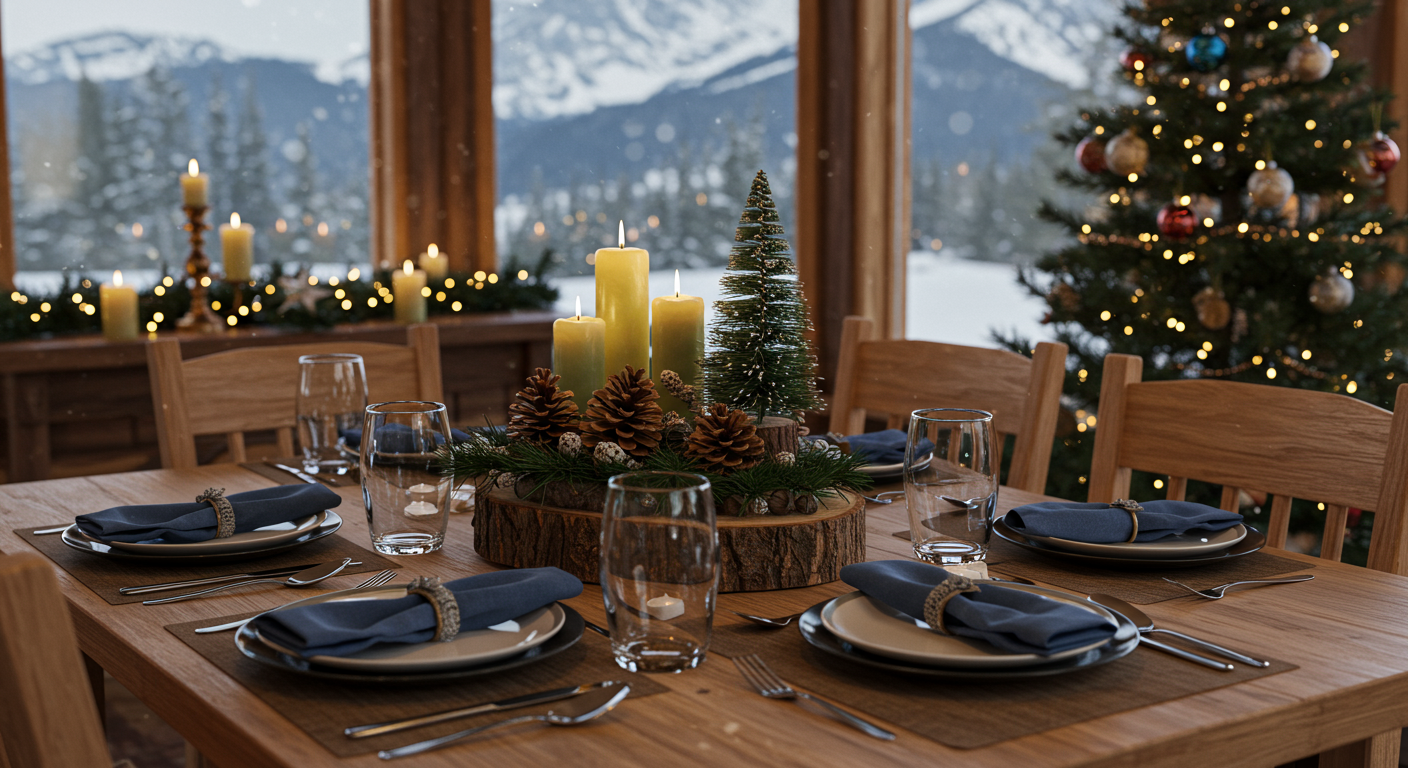 Design a holiday table centerpiece using Montana-inspired elements like pinecones, berries, small cedar branches, and even locally sourced decorations. Arrange them on a rustic wood slab or tray and add in a few battery-operated lights to create a glowing, winter-themed focal point that feels timeless and local.