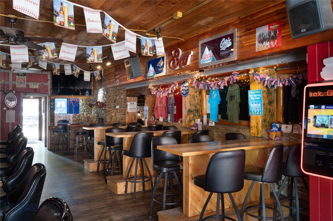The iconic 5 Spot Bar and Casino, along with the Touch of Country Restaurant has been a staple in Absarokee, MT for years. Log walls surrounding the extensive wooden bar and stone fireplace make for a cozy local watering hole for all seasons. Centrally located on a corner downtown lot, this business has been successfully operated by locals for all to enjoy. The open seating atmosphere provides plenty of space for customers, complete with an outdoor patio and a private pool room leading into the Casino next door. The Casino consists of 18 slot machines and offers a variety of gaming. On the corner of the building sits the Touch of Country Restaurant, fully stocked with all fixtures and equipment needed to run a successful venture. Situated between the Interstate access, Nye, Fishtail and Red Lodge - the 5 Spot caters to travelers, miners, adventurists, outdoorsmen and locals alike.