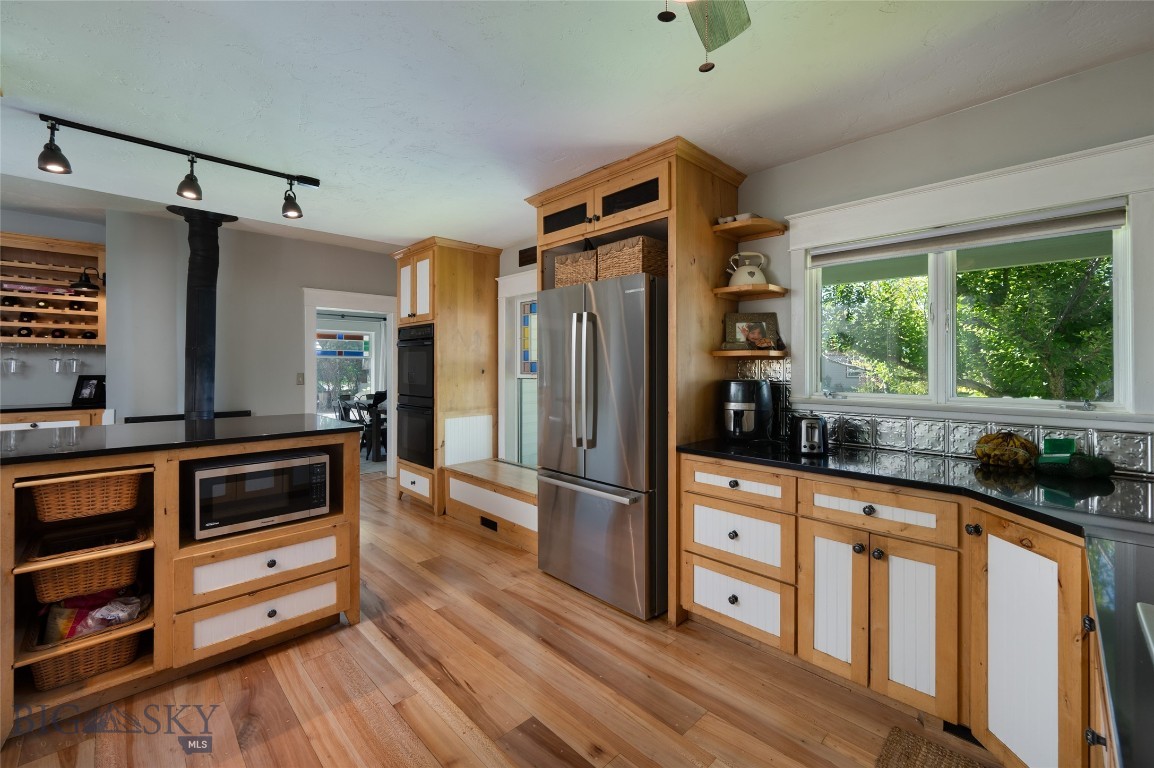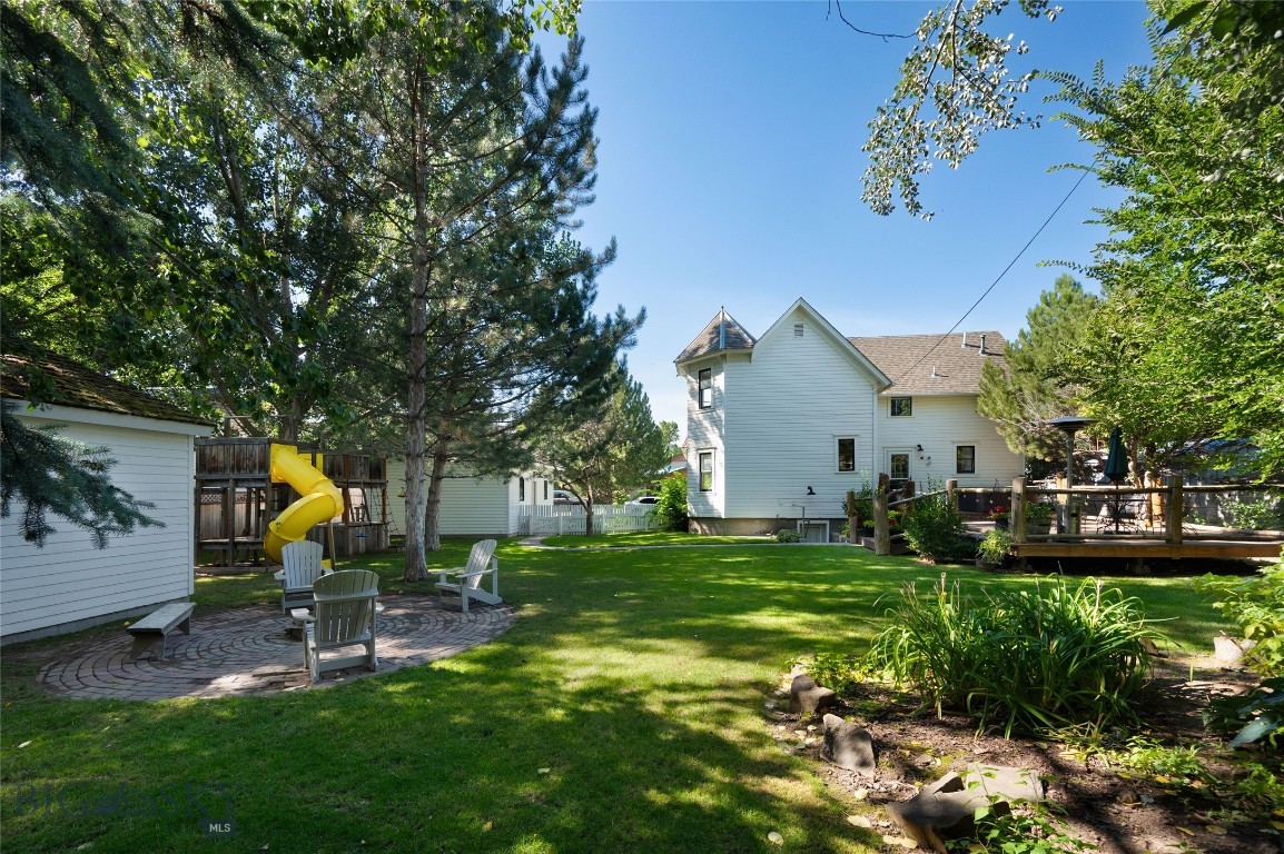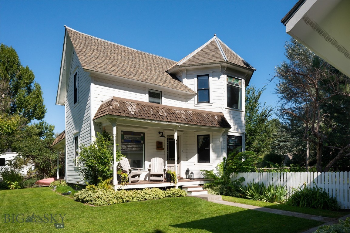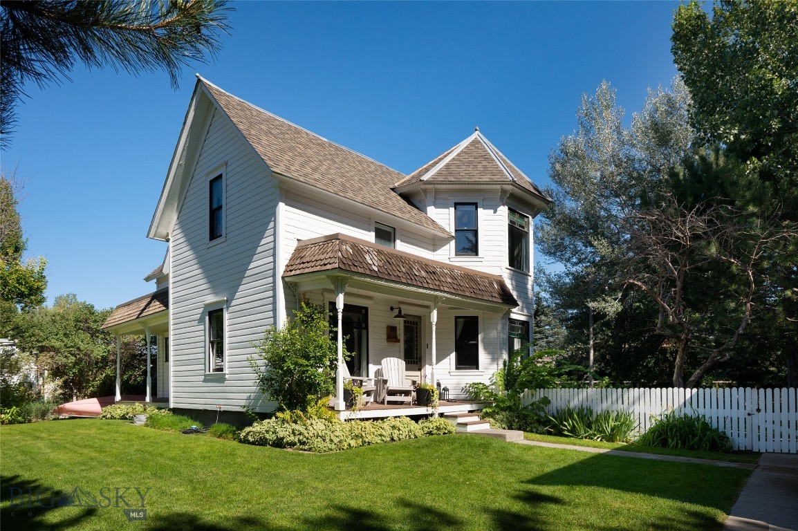 Step into a piece of Montana's storied past with this exquisite Victorian gem, beautifully situated in the serene landscape of Manhattan, where the Seller is offering a $15,000 BUYER CLOSING CREDIT to help with closing costs &/or interest rate buy down! Enveloped by mature apple trees and lush gardens, this period home offers a picturesque setting that echoes the charm of a bygone era while seamlessly blending with modern comforts. The home's expansive outdoor spaces are perfect for both tranquil relaxation and vibrant gatherings. Imagine hosting friends and family on the large deck, savoring the warmth of the fire pit under Montana's starlit skies, while listening to the tranquil creek behind the house. Additionally, the large lot features an oversized detached garage, a detached and separate office space with privacy for working from home, and grassed areas for the play structure, games, and enjoyment. The main level features classic stained-glass windows and refinished hardwood floors as you enter the dining room and kitchen spaces. The chef's kitchen stands as a testament to both elegance and functionality, featuring sleek granite countertops, double ovens, a generously sized island, and a classic wood stove that recalls the grace of Victorian kitchens. Just off the kitchen is a living room for cozy gatherings and entertaining. The upper level retains its timeless allure with three bedrooms, laundry, and remodeled full bathroom with clawfoot tub and heated floors, blending contemporary style with classic touches. The walkout lower level extends the home's charm with thoughtfully designed living spaces that include a kitchenette, inviting living and additional sleeping areas, with an added 3/4 bath. This level provides a perfect retreat for guests or extended family with separate entry, offering both comfort and privacy for a multitude of functions and uses. This historic Victorian home in Manhattan is more than just a residence--it's a gateway to experiencing the grace and sophistication of Montana's past, combined with the luxuries of today.