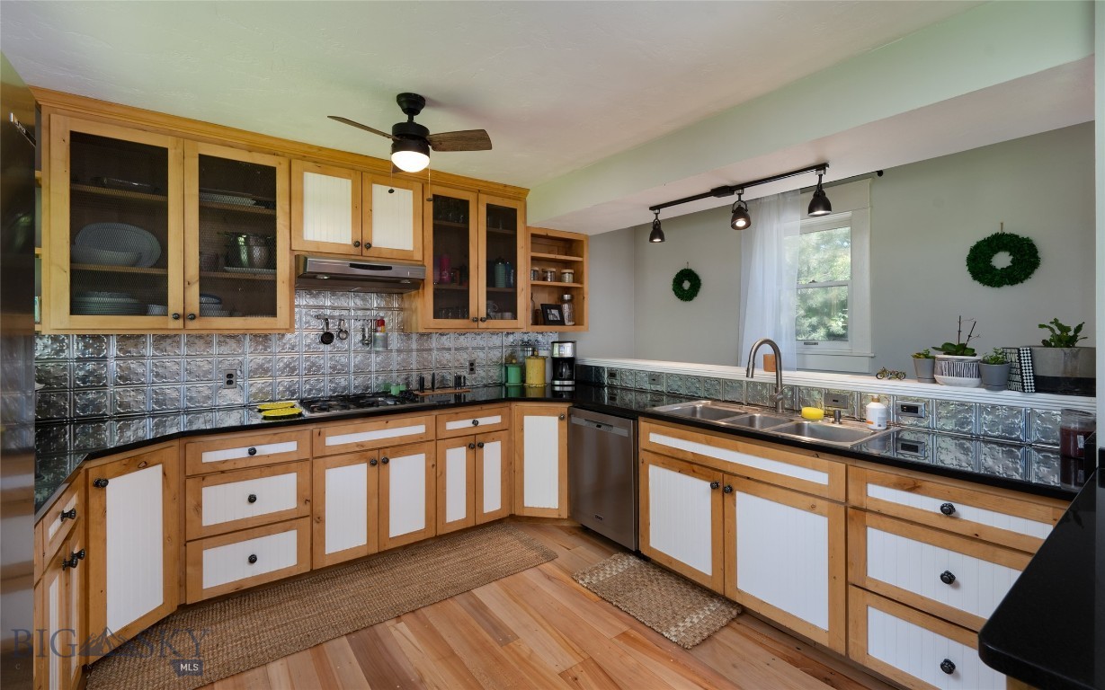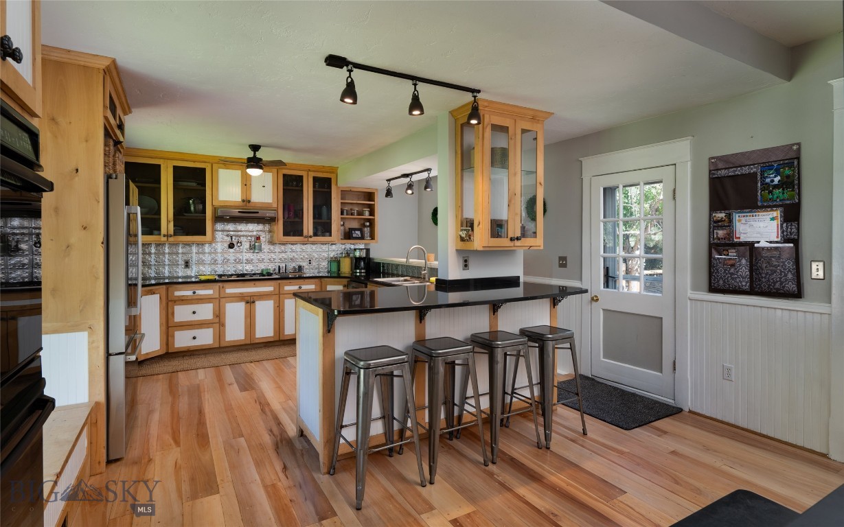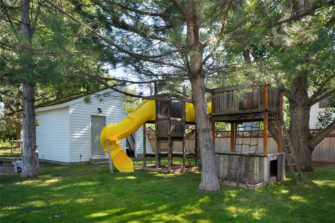 Step into a piece of Montana's storied past with this exquisite Victorian gem, beautifully situated in the serene landscape of Manhattan, where the Seller is offering a $15,000 BUYER CLOSING CREDIT to help with closing costs &/or interest rate buy down! Enveloped by mature apple trees and lush gardens, this period home offers a picturesque setting that echoes the charm of a bygone era while seamlessly blending with modern comforts. The home's expansive outdoor spaces are perfect for both tranquil relaxation and vibrant gatherings. Imagine hosting friends and family on the large deck, savoring the warmth of the fire pit under Montana's starlit skies, while listening to the tranquil creek behind the house. Additionally, the large lot features an oversized detached garage, a detached and separate office space with privacy for working from home, and grassed areas for the play structure, games, and enjoyment. The main level features classic stained-glass windows and refinished hardwood floors as you enter the dining room and kitchen spaces. The chef's kitchen stands as a testament to both elegance and functionality, featuring sleek granite countertops, double ovens, a generously sized island, and a classic wood stove that recalls the grace of Victorian kitchens. Just off the kitchen is a living room for cozy gatherings and entertaining. The upper level retains its timeless allure with three bedrooms, laundry, and remodeled full bathroom with clawfoot tub and heated floors, blending contemporary style with classic touches. The walkout lower level extends the home's charm with thoughtfully designed living spaces that include a kitchenette, inviting living and additional sleeping areas, with an added 3/4 bath. This level provides a perfect retreat for guests or extended family with separate entry, offering both comfort and privacy for a multitude of functions and uses. This historic Victorian home in Manhattan is more than just a residence--it's a gateway to experiencing the grace and sophistication of Montana's past, combined with the luxuries of today.