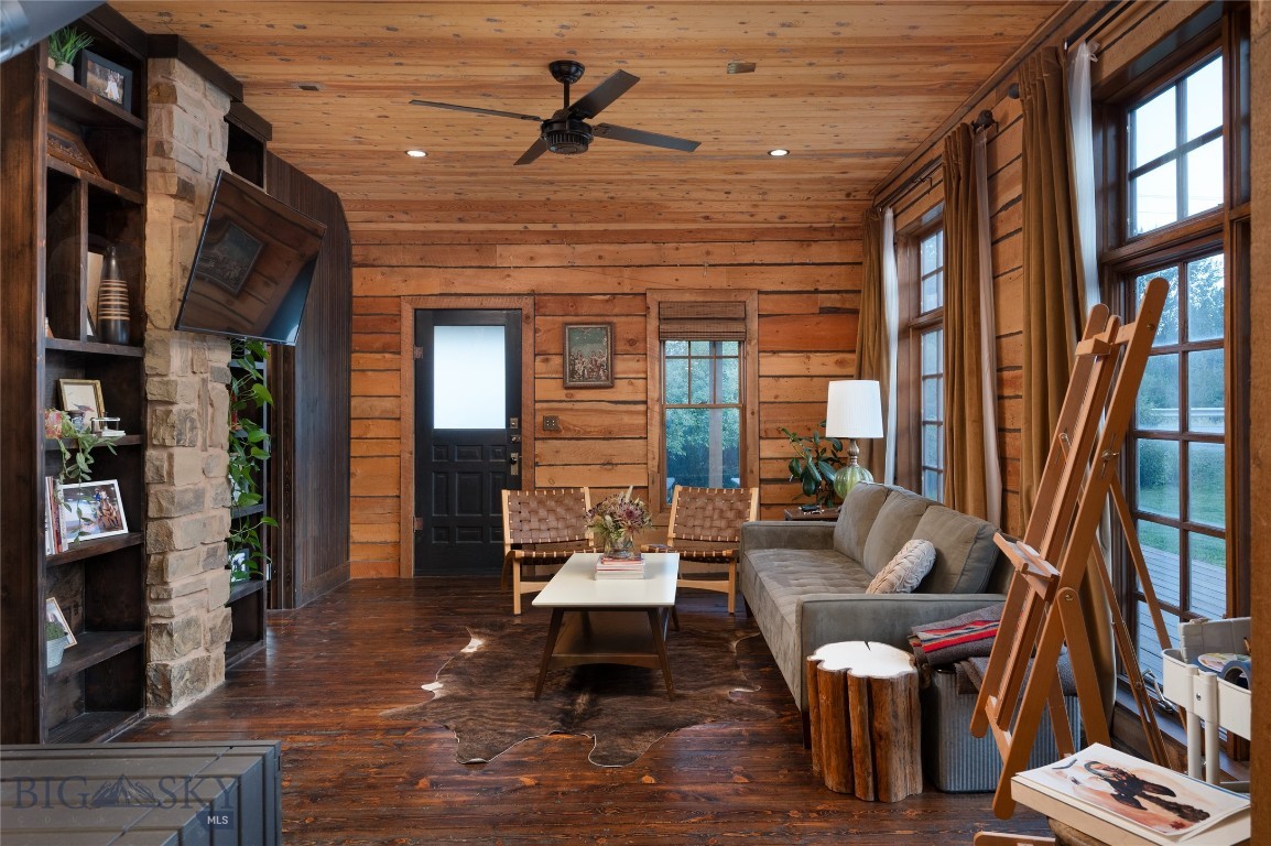Historic Gallatin River Retreat - Meticulously Remodeled with Modern Luxury || Step back in time without sacrificing modern comfort at this extraordinary Gallatin River retreat in the heart of Gallatin Gateway. Originally constructed in 1885 and completely reimagined from the studs out since 2020, this rare single-family residence masterfully blends authentic historic character with premium, contemporary upgrades on a 0.44-acre lot directly bordering the river. Nestled in the original Salesville Plat, across from iconic Stacey's and The Westerner, this un-zoned property offers unmatched charm, versatility, and investment potential--just 20 minutes from Bozeman and 45 minutes from Big Sky Resort. Inside, the home showcases its heritage with restored original cabin wood floors, walls, and ceilings, balanced beautifully by all-new electrical, plumbing, insulation, and high-efficiency architectural wood windows. Comfort and quality are built into every detail: in-floor radiant heat via a high-performance combi boiler, sound-dampened interior walls for privacy, and a striking see-through wood stove anchoring the living space. The custom kitchen combines warmth and function with handcrafted cabinetry, a walk-in pantry, gas range with hood, a bespoke island, and French doors opening to the backyard oasis. The primary suite features restored wood floors, floor-to-ceiling windows, and custom closets, while the spa-inspired bath boasts a fully tiled shower, restored clawfoot tub, artisan vanity, and stained-glass accent window. The property's outdoor amenities are equally compelling: a new roof, cedar siding, deck, and gutters enhance the home's longevity and style, while the fenced backyard offers a fire pit, flagstone patio, raised garden beds, and a powered new shed. Beyond the main residence, the property includes two versatile outbuildings: 1) A fully insulated, heated shop, ideal for woodworking, metalworking, or as a professional-grade workspace; 2) A 2nd detached structure, perfectly positioned to become a guest house, art studio, detached office, or creative retreat--offering boundless potential for customization. Whether you envision it as a full-time sanctuary, weekend escape, or distinctive investment, 407 Mill Street presents a rare opportunity to own a thoughtfully modernized piece of Gallatin Gateway history--complete with direct access to the timeless beauty of the Gallatin River.