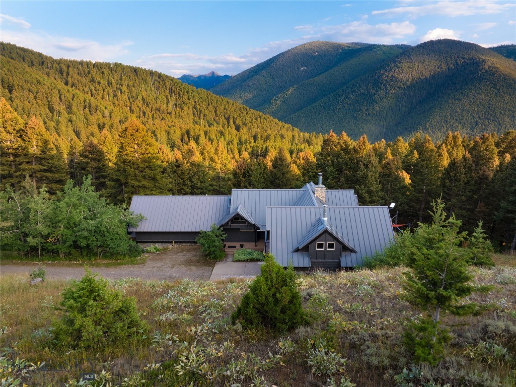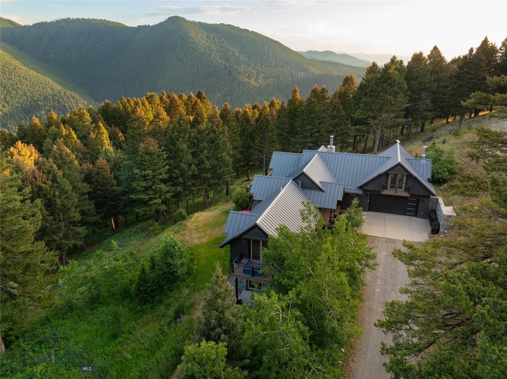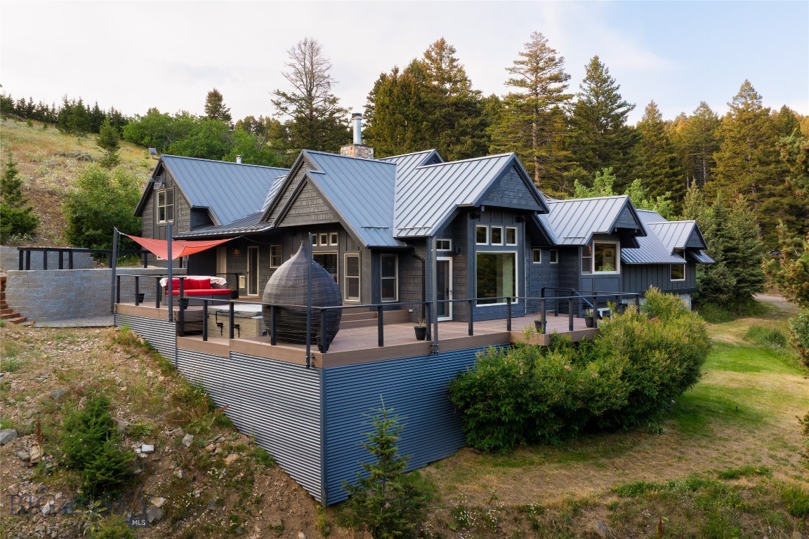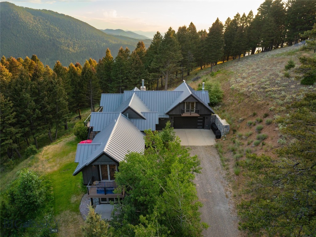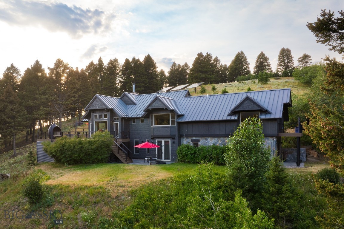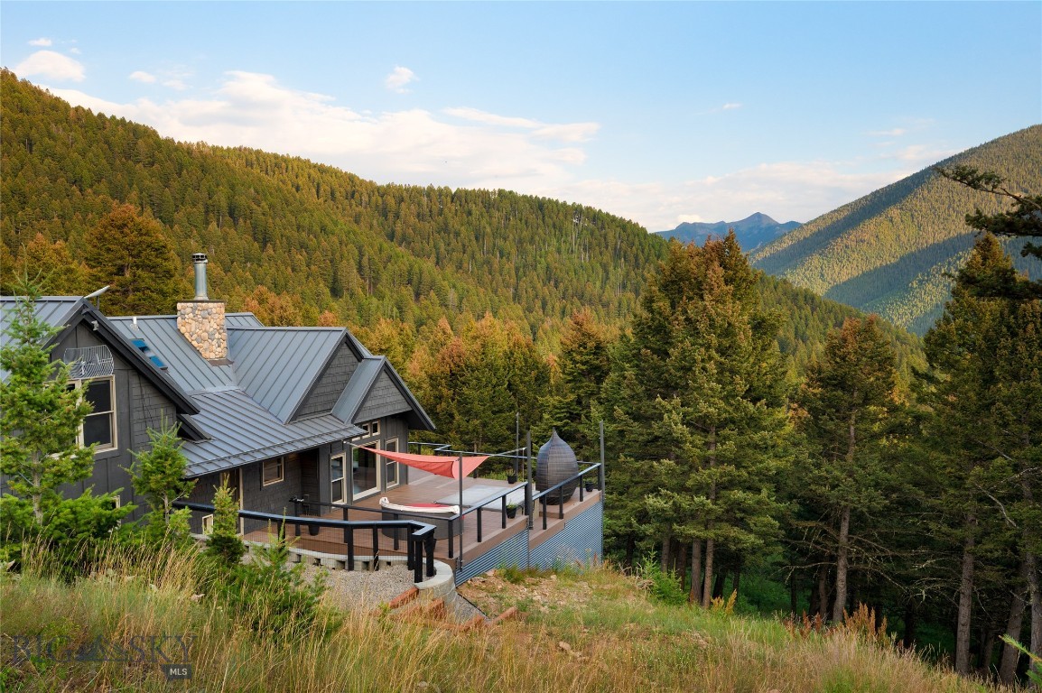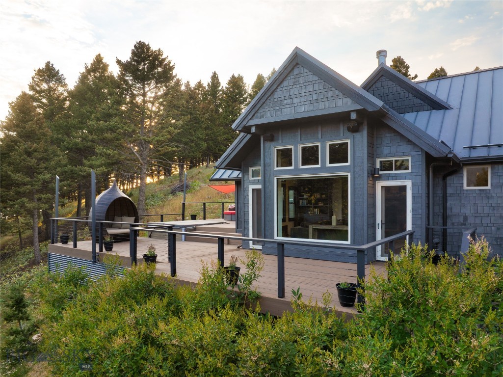 Tucked within a gated enclave of only a few residences, this property offers a rare opportunity to own one of Bozeman's most artfully designed & nature-immersed retreats. Set on 20 pristine acres with unobstructed views of Mount Blackmore, this one-of-a-kind property is a haven of old-growth Douglas fir, natural springs, year-round wetlands, and nearly two miles of on-property private trails. Wildlife is abundant--moose, elk, deer, and fox are regular visitors. HOA easement access to National Forest trails lies just 500 feet from the home, putting boundless outdoor adventure within easy reach. Between 2019 and 2024, the residence underwent a substantial renovation that harmoniously blends elevated design with thoughtful sustainability. Reclaimed wood beams, Monarch "Domaine Braize" wide-plank oak floors, and expansive picture windows create an atmosphere of timeless elegance & warmth, perfectly framing the surrounding forest & the commanding view of Mount Blackmore. A Ci2700 Regency wood-burning stove anchors the living space with radiant comfort, supported by seasoned on-site firewood & excellent insulation. The chef's kitchen is both refined & functional, appointed with a paneled SubZero fridge/freezer, induction cooktop, custom lighting, and seamless flow to the living & dining areas. Indoor-outdoor living is effortless with TimberTech fire-rated decking, a 7-person sunken Prism hot tub, built-in SONOS sound system, and views stretching across the Gallatin Valley. Energy use is remarkably low thanks to a 10,000 kW solar system with Harvest Solar panels, premium insulation, and metal roofing. A heated two-car garage features a Flying Pig dog wash, while an automated pet door and invisible fencing encompass the full 20 acres for four-legged freedom. Additional amenities include a large home gym (easily converted to a fourth bedroom), double-enclosed deck storage, and integrated fire mitigation systems. Every detail has been curated with intention--from Veraluz lighting & a Vermont-made Hubbardton Forge chandelier, to Nama Rococo wallpaper, marble bath finishes, and a reclaimed Virginia reclaimed fireplace mantle--each element adding depth, character, and story. More than a home, this is a private mountain retreat where exceptional design, pristine wilderness, and sustainable living converge--just minutes from downtown Bozeman, yet a world apart.