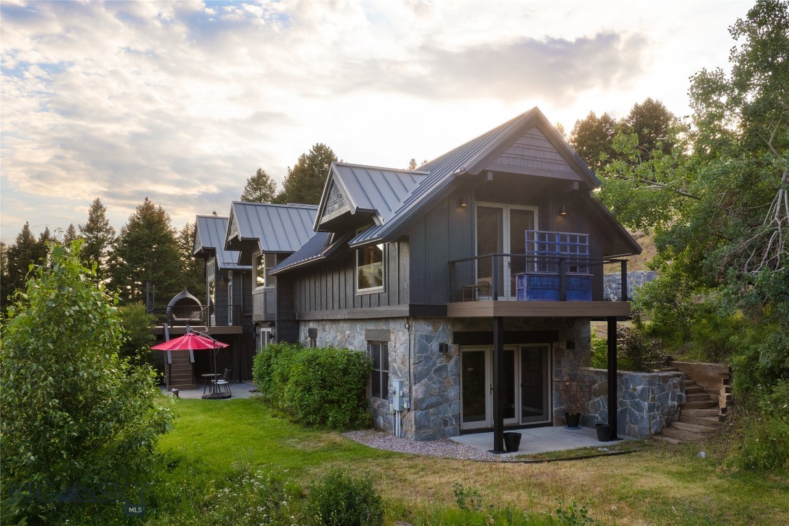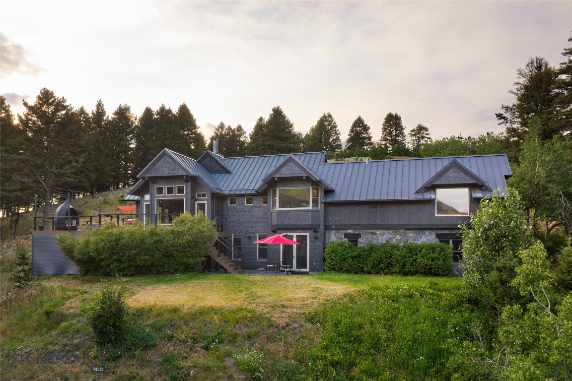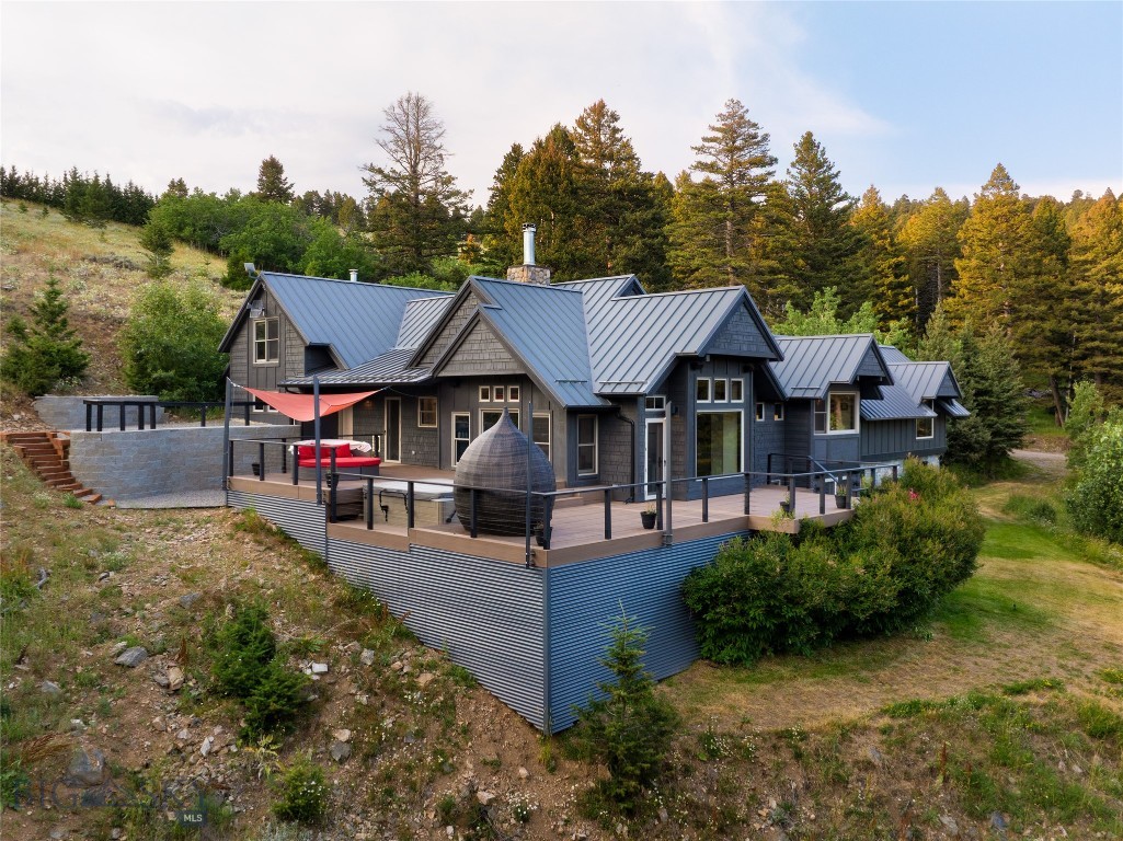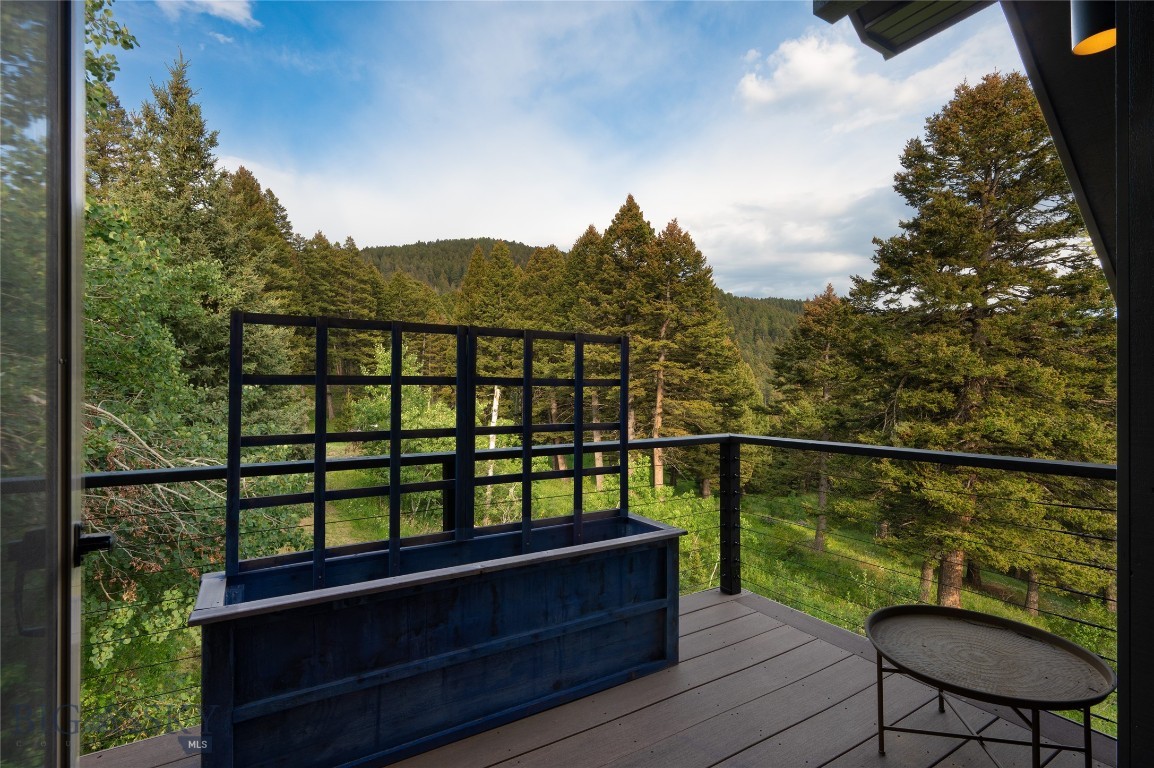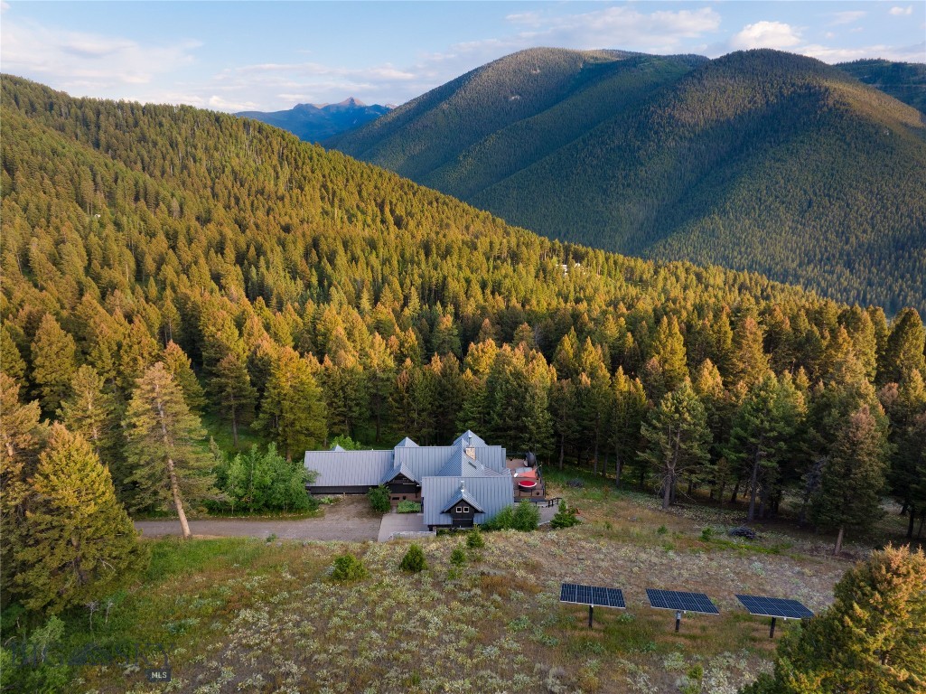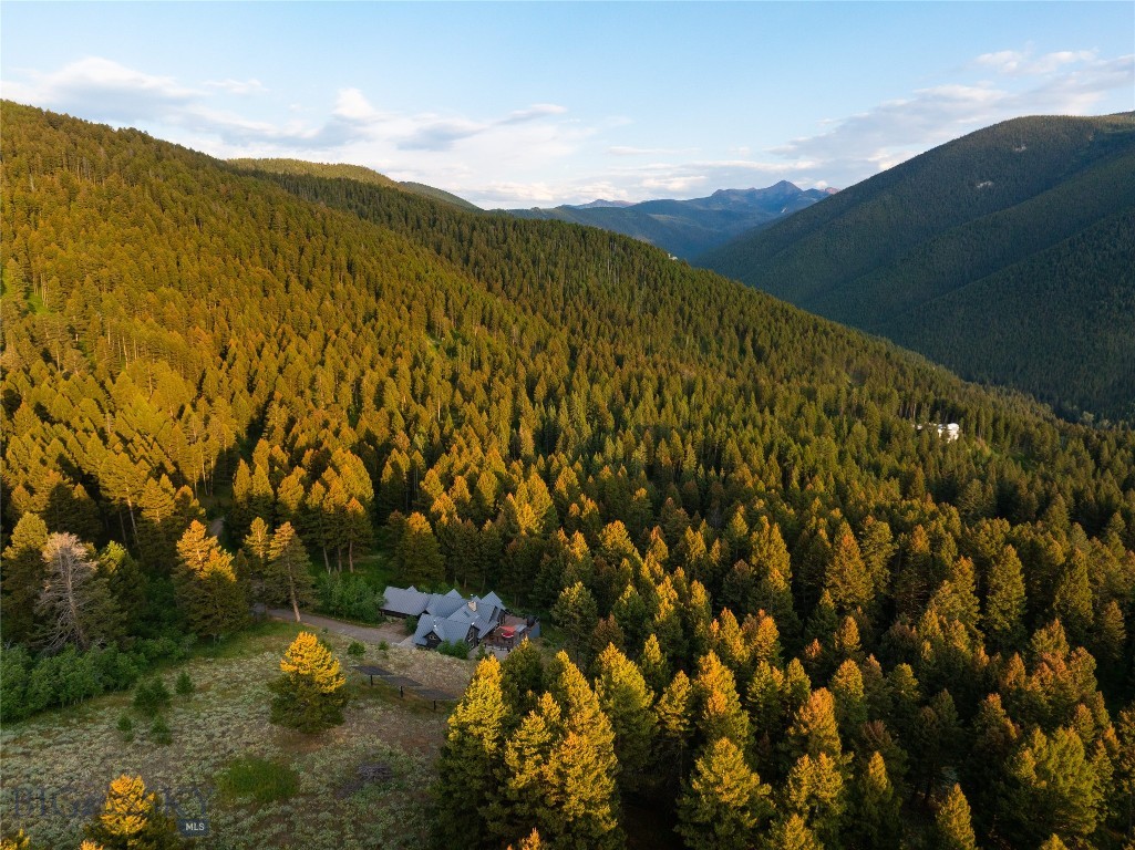 Tucked within a gated enclave of only a few residences, this property offers a rare opportunity to own one of Bozeman's most artfully designed & nature-immersed retreats. Set on 20 pristine acres with unobstructed views of Mount Blackmore, this one-of-a-kind property is a haven of old-growth Douglas fir, natural springs, year-round wetlands, and nearly two miles of on-property private trails. Wildlife is abundant--moose, elk, deer, and fox are regular visitors. HOA easement access to National Forest trails lies just 500 feet from the home, putting boundless outdoor adventure within easy reach. Between 2019 and 2024, the residence underwent a substantial renovation that harmoniously blends elevated design with thoughtful sustainability. Reclaimed wood beams, Monarch "Domaine Braize" wide-plank oak floors, and expansive picture windows create an atmosphere of timeless elegance & warmth, perfectly framing the surrounding forest & the commanding view of Mount Blackmore. A Ci2700 Regency wood-burning stove anchors the living space with radiant comfort, supported by seasoned on-site firewood & excellent insulation. The chef's kitchen is both refined & functional, appointed with a paneled SubZero fridge/freezer, induction cooktop, custom lighting, and seamless flow to the living & dining areas. Indoor-outdoor living is effortless with TimberTech fire-rated decking, a 7-person sunken Prism hot tub, built-in SONOS sound system, and views stretching across the Gallatin Valley. Energy use is remarkably low thanks to a 10,000 kW solar system with Harvest Solar panels, premium insulation, and metal roofing. A heated two-car garage features a Flying Pig dog wash, while an automated pet door and invisible fencing encompass the full 20 acres for four-legged freedom. Additional amenities include a large home gym (easily converted to a fourth bedroom), double-enclosed deck storage, and integrated fire mitigation systems. Every detail has been curated with intention--from Veraluz lighting & a Vermont-made Hubbardton Forge chandelier, to Nama Rococo wallpaper, marble bath finishes, and a reclaimed Virginia reclaimed fireplace mantle--each element adding depth, character, and story. More than a home, this is a private mountain retreat where exceptional design, pristine wilderness, and sustainable living converge--just minutes from downtown Bozeman, yet a world apart.