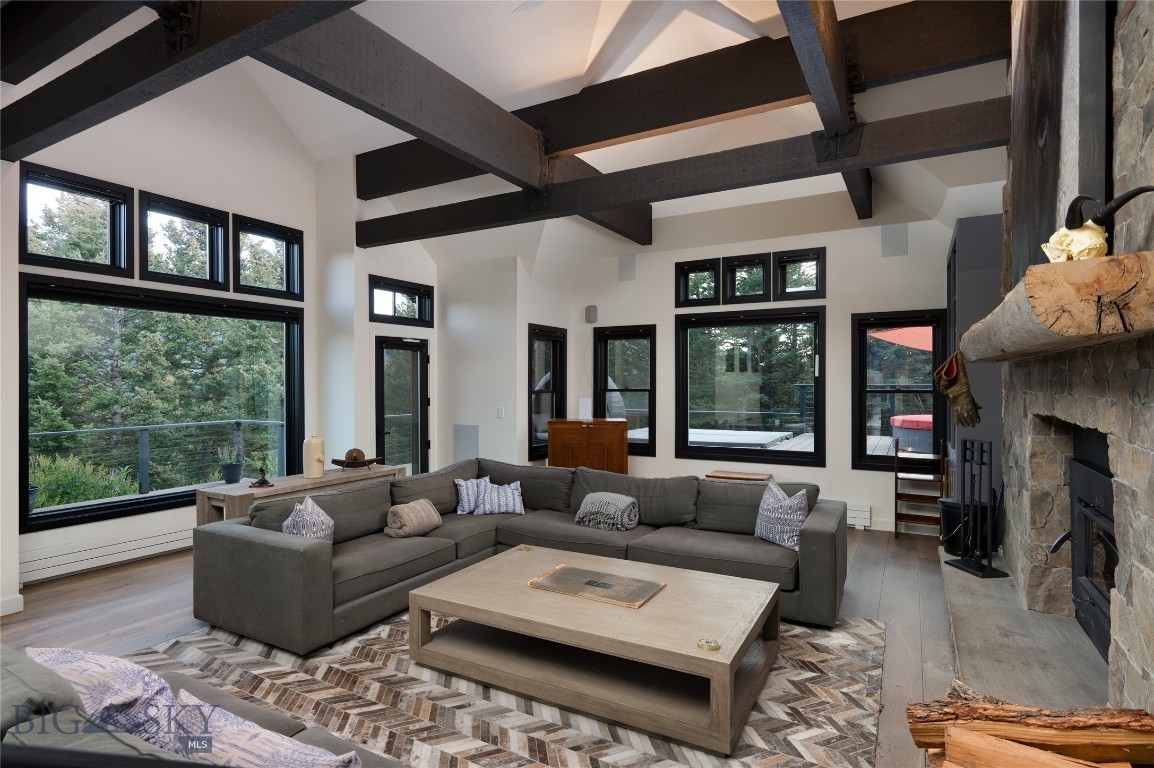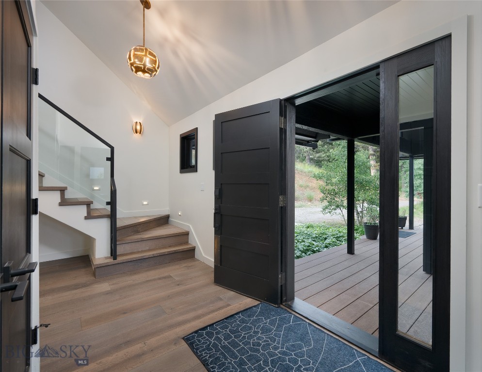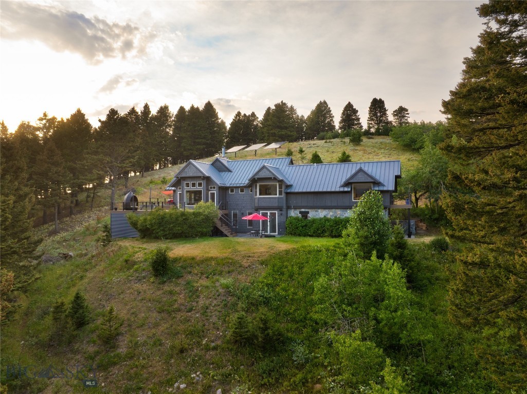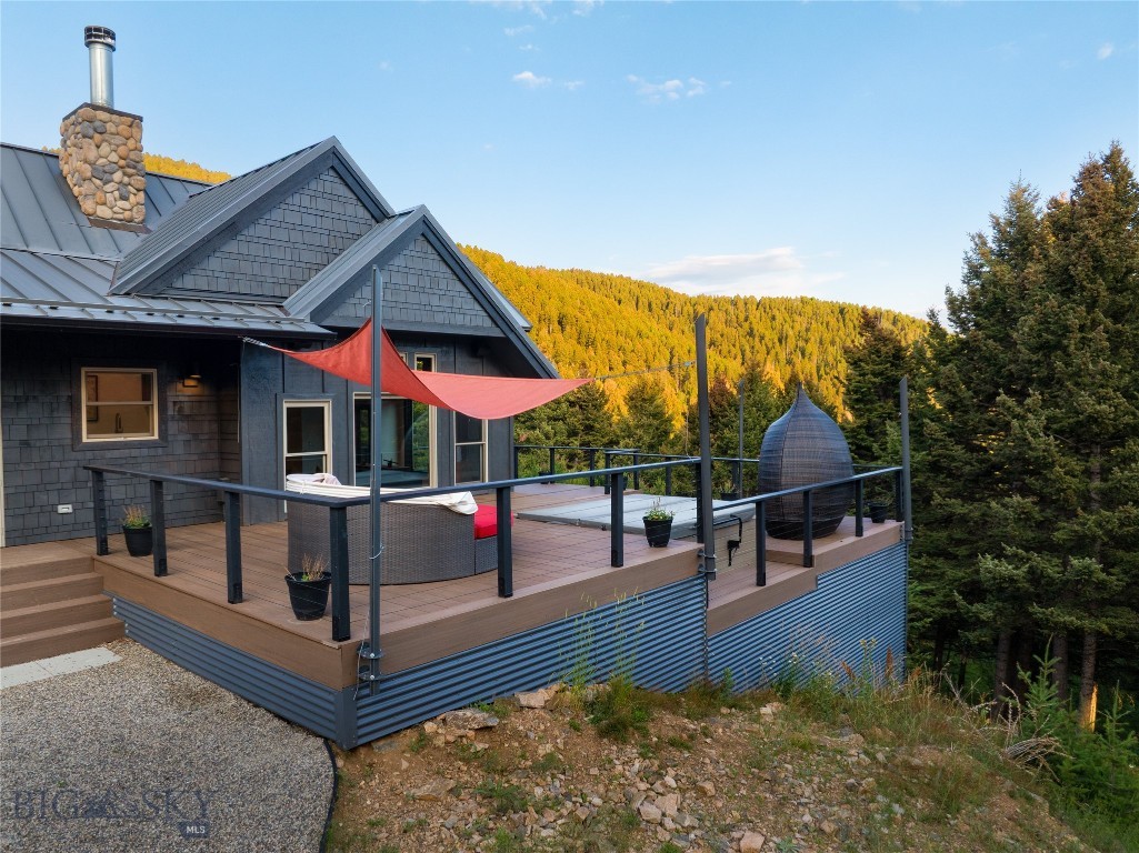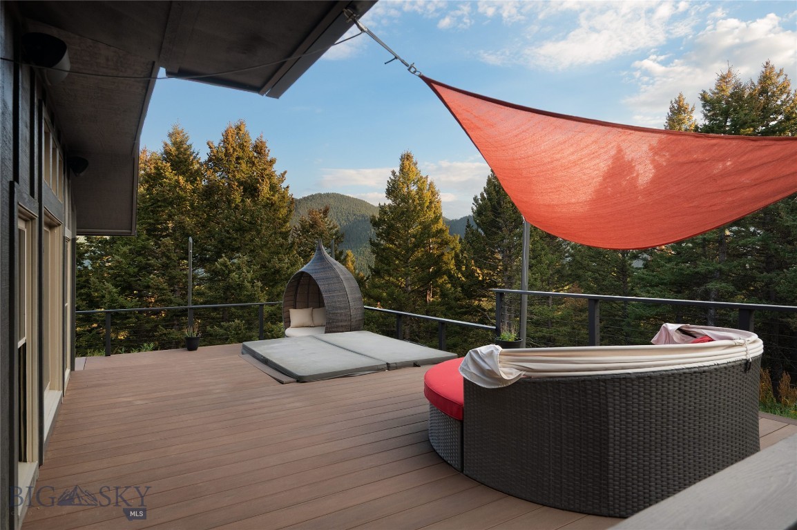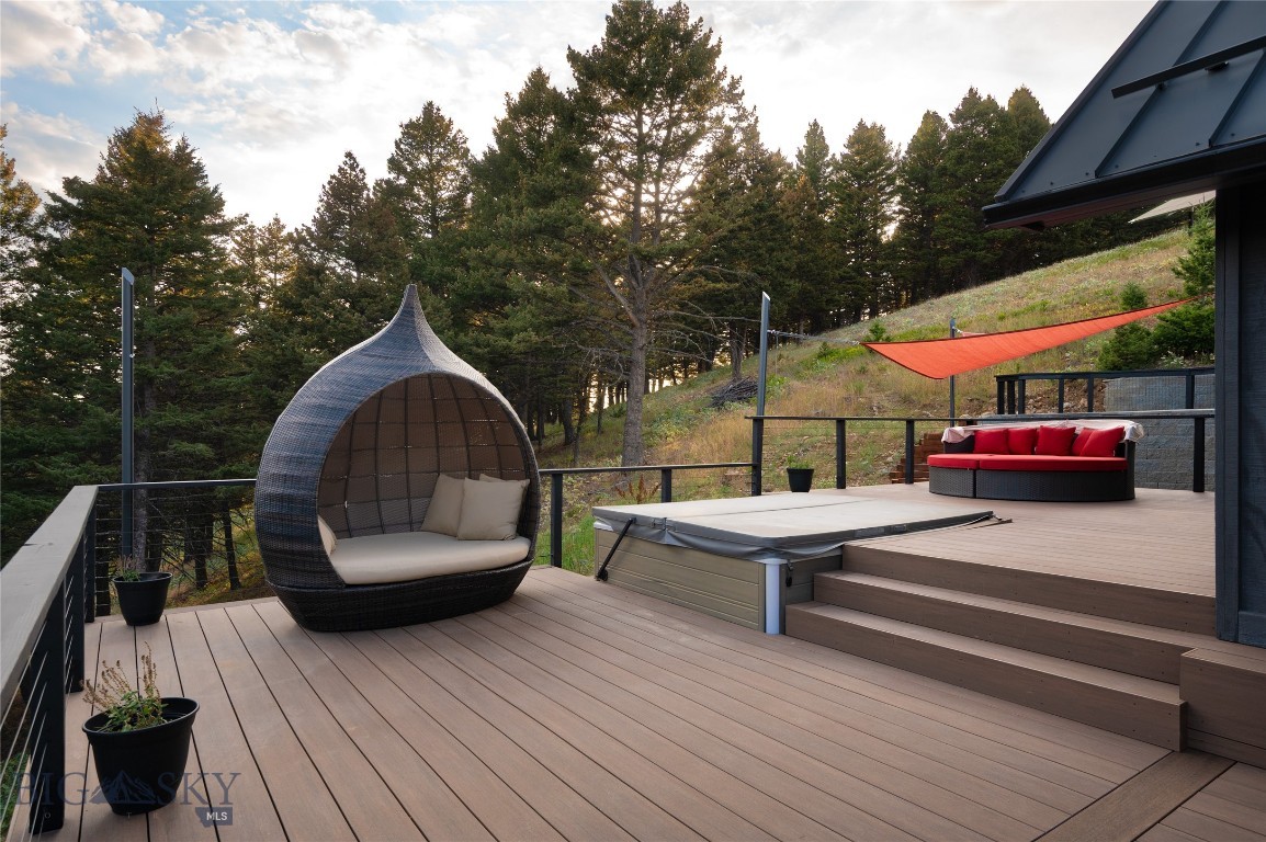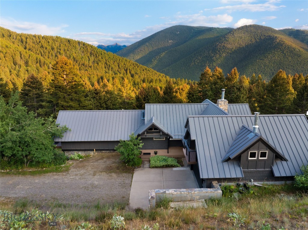 Tucked within a gated enclave of only a few residences, this property offers a rare opportunity to own one of Bozeman's most artfully designed & nature-immersed retreats. Set on 20 pristine acres with unobstructed views of Mount Blackmore, this one-of-a-kind property is a haven of old-growth Douglas fir, natural springs, year-round wetlands, and nearly two miles of on-property private trails. Wildlife is abundant--moose, elk, deer, and fox are regular visitors. HOA easement access to National Forest trails lies just 500 feet from the home, putting boundless outdoor adventure within easy reach. Between 2019 and 2024, the residence underwent a substantial renovation that harmoniously blends elevated design with thoughtful sustainability. Reclaimed wood beams, Monarch "Domaine Braize" wide-plank oak floors, and expansive picture windows create an atmosphere of timeless elegance & warmth, perfectly framing the surrounding forest & the commanding view of Mount Blackmore. A Ci2700 Regency wood-burning stove anchors the living space with radiant comfort, supported by seasoned on-site firewood & excellent insulation. The chef's kitchen is both refined & functional, appointed with a paneled SubZero fridge/freezer, induction cooktop, custom lighting, and seamless flow to the living & dining areas. Indoor-outdoor living is effortless with TimberTech fire-rated decking, a 7-person sunken Prism hot tub, built-in SONOS sound system, and views stretching across the Gallatin Valley. Energy use is remarkably low thanks to a 10,000 kW solar system with Harvest Solar panels, premium insulation, and metal roofing. A heated two-car garage features a Flying Pig dog wash, while an automated pet door and invisible fencing encompass the full 20 acres for four-legged freedom. Additional amenities include a large home gym (easily converted to a fourth bedroom), double-enclosed deck storage, and integrated fire mitigation systems. Every detail has been curated with intention--from Veraluz lighting & a Vermont-made Hubbardton Forge chandelier, to Nama Rococo wallpaper, marble bath finishes, and a reclaimed Virginia reclaimed fireplace mantle--each element adding depth, character, and story. More than a home, this is a private mountain retreat where exceptional design, pristine wilderness, and sustainable living converge--just minutes from downtown Bozeman, yet a world apart.