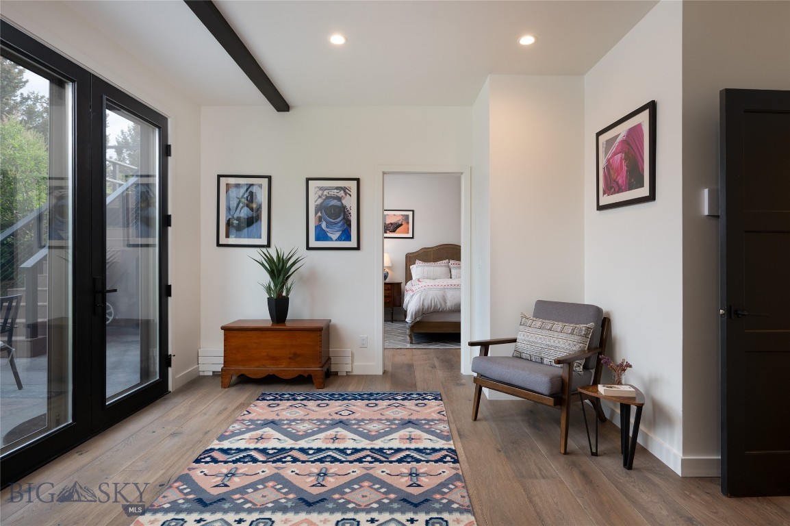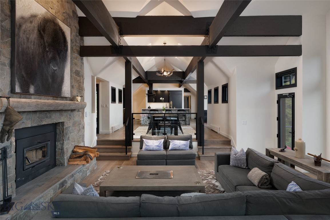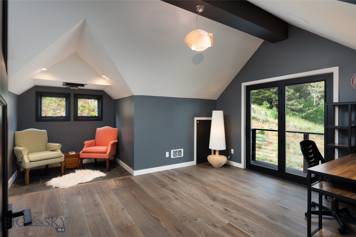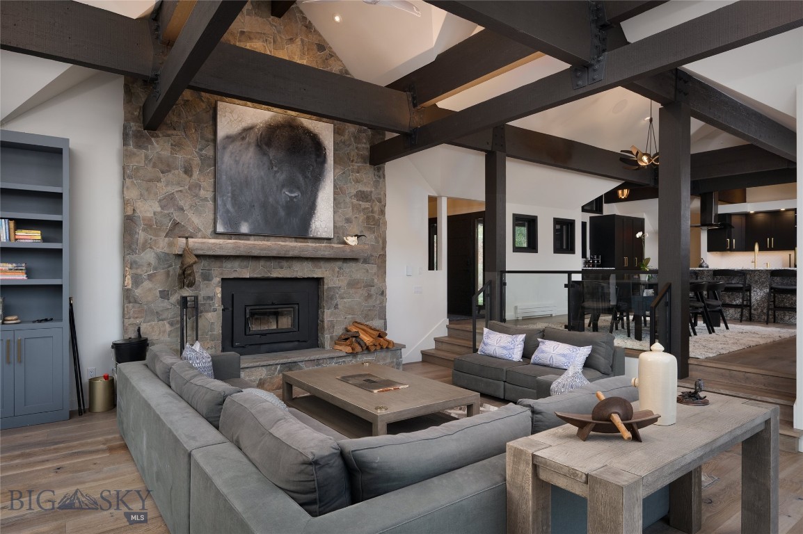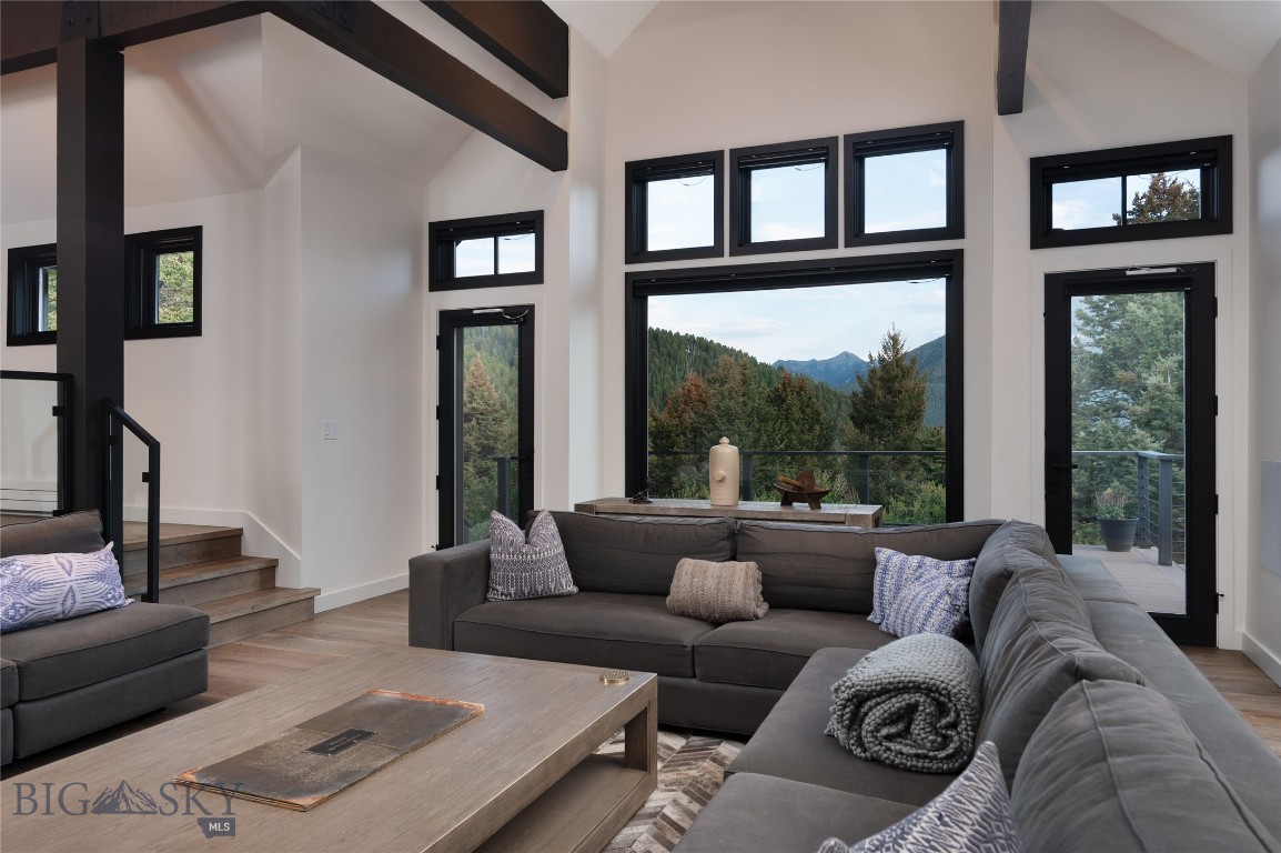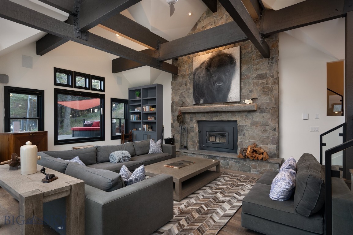 Tucked within a gated enclave of only a few residences, this property offers a rare opportunity to own one of Bozeman's most artfully designed & nature-immersed retreats. Set on 20 pristine acres with unobstructed views of Mount Blackmore, this one-of-a-kind property is a haven of old-growth Douglas fir, natural springs, year-round wetlands, and nearly two miles of on-property private trails. Wildlife is abundant--moose, elk, deer, and fox are regular visitors. HOA easement access to National Forest trails lies just 500 feet from the home, putting boundless outdoor adventure within easy reach. Between 2019 and 2024, the residence underwent a substantial renovation that harmoniously blends elevated design with thoughtful sustainability. Reclaimed wood beams, Monarch "Domaine Braize" wide-plank oak floors, and expansive picture windows create an atmosphere of timeless elegance & warmth, perfectly framing the surrounding forest & the commanding view of Mount Blackmore. A Ci2700 Regency wood-burning stove anchors the living space with radiant comfort, supported by seasoned on-site firewood & excellent insulation. The chef's kitchen is both refined & functional, appointed with a paneled SubZero fridge/freezer, induction cooktop, custom lighting, and seamless flow to the living & dining areas. Indoor-outdoor living is effortless with TimberTech fire-rated decking, a 7-person sunken Prism hot tub, built-in SONOS sound system, and views stretching across the Gallatin Valley. Energy use is remarkably low thanks to a 10,000 kW solar system with Harvest Solar panels, premium insulation, and metal roofing. A heated two-car garage features a Flying Pig dog wash, while an automated pet door and invisible fencing encompass the full 20 acres for four-legged freedom. Additional amenities include a large home gym (easily converted to a fourth bedroom), double-enclosed deck storage, and integrated fire mitigation systems. Every detail has been curated with intention--from Veraluz lighting & a Vermont-made Hubbardton Forge chandelier, to Nama Rococo wallpaper, marble bath finishes, and a reclaimed Virginia reclaimed fireplace mantle--each element adding depth, character, and story. More than a home, this is a private mountain retreat where exceptional design, pristine wilderness, and sustainable living converge--just minutes from downtown Bozeman, yet a world apart.