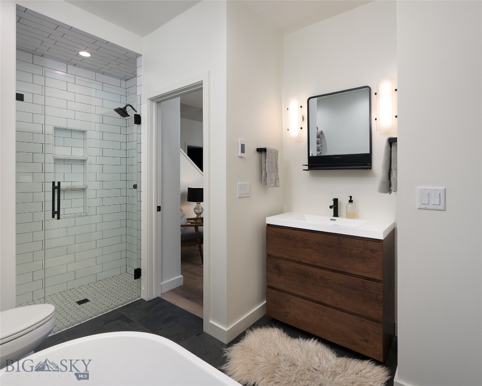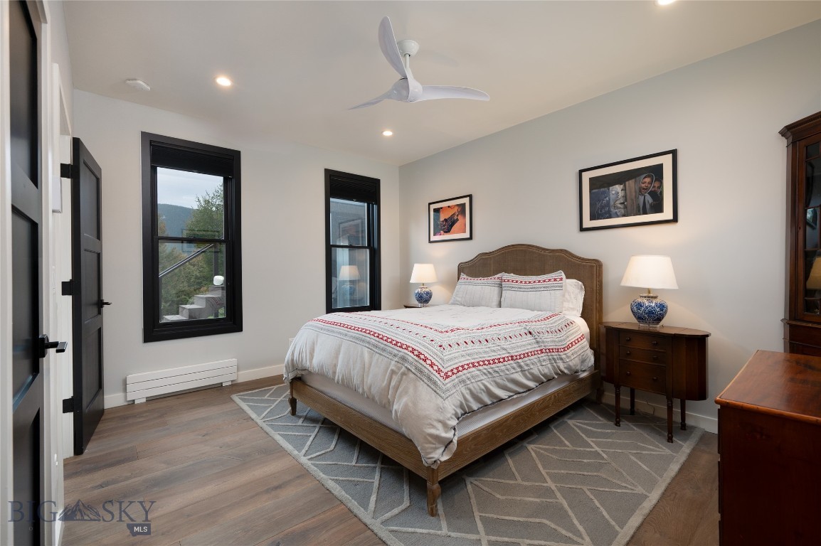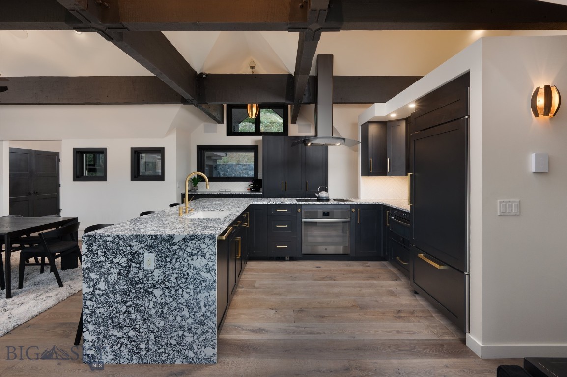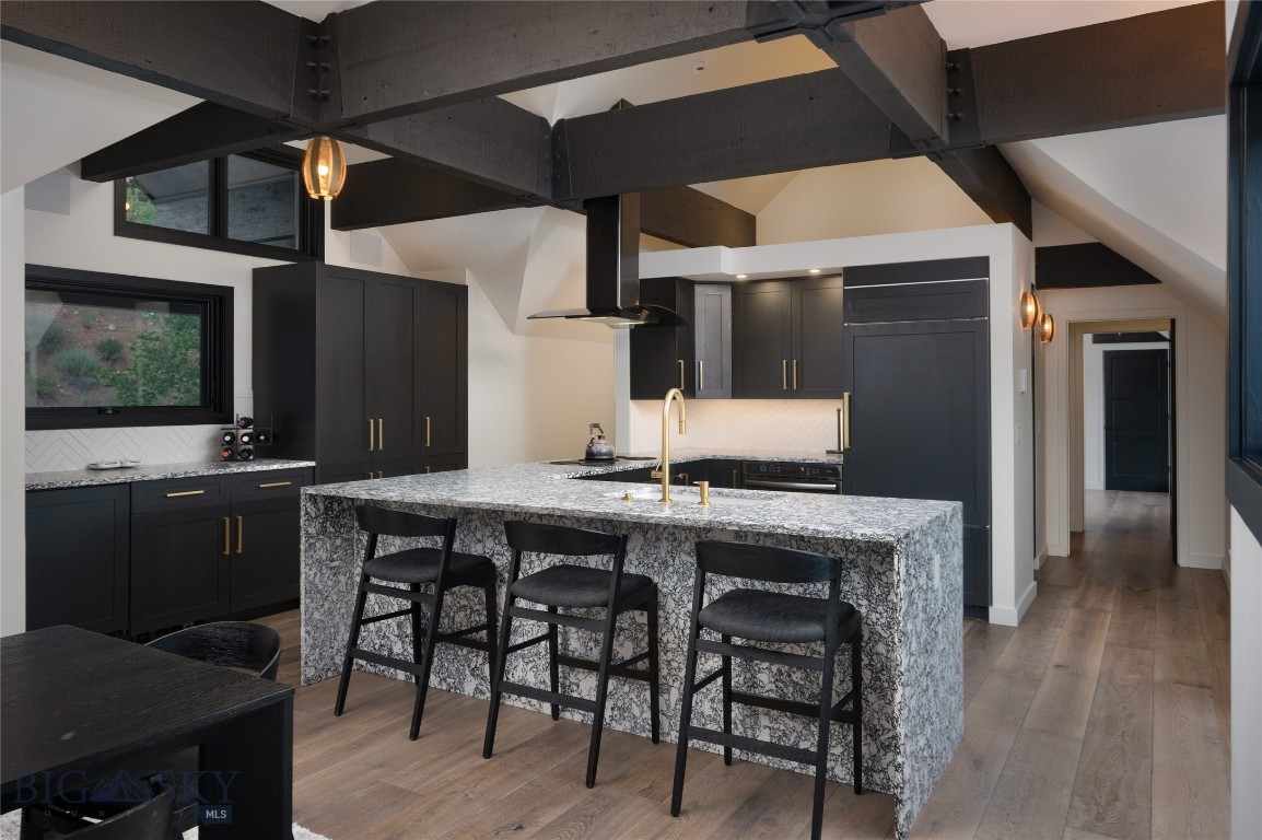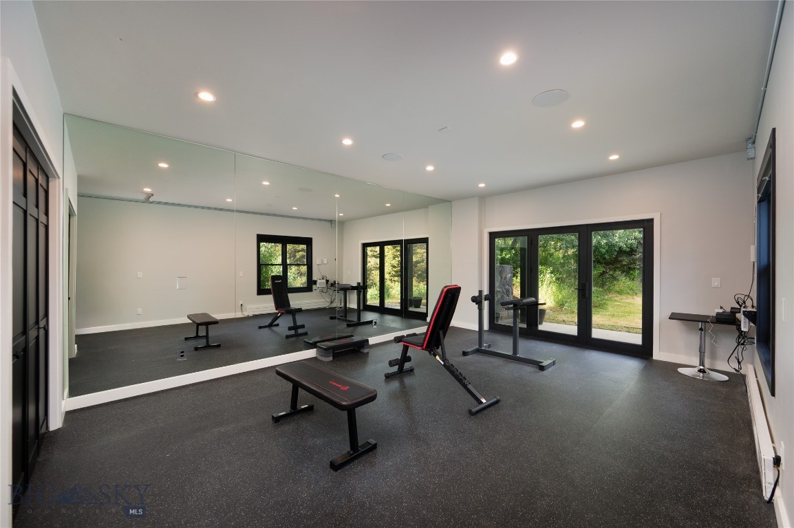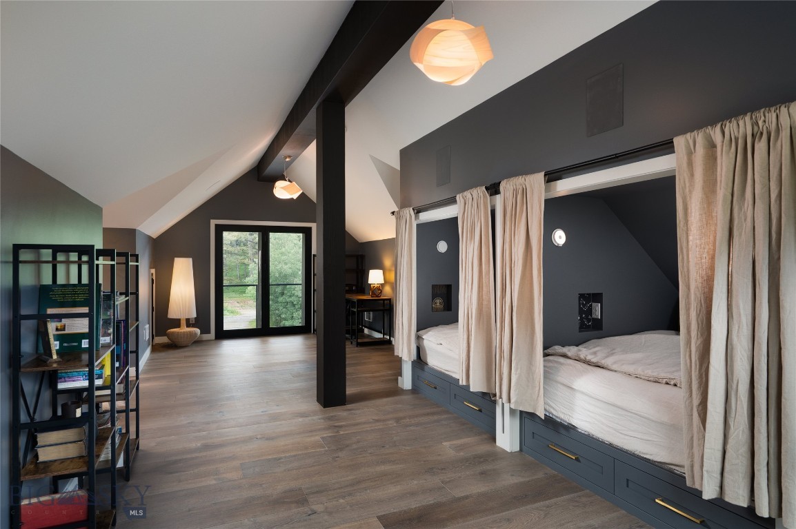 Tucked within a gated enclave of only a few residences, this property offers a rare opportunity to own one of Bozeman's most artfully designed & nature-immersed retreats. Set on 20 pristine acres with unobstructed views of Mount Blackmore, this one-of-a-kind property is a haven of old-growth Douglas fir, natural springs, year-round wetlands, and nearly two miles of on-property private trails. Wildlife is abundant--moose, elk, deer, and fox are regular visitors. HOA easement access to National Forest trails lies just 500 feet from the home, putting boundless outdoor adventure within easy reach. Between 2019 and 2024, the residence underwent a substantial renovation that harmoniously blends elevated design with thoughtful sustainability. Reclaimed wood beams, Monarch "Domaine Braize" wide-plank oak floors, and expansive picture windows create an atmosphere of timeless elegance & warmth, perfectly framing the surrounding forest & the commanding view of Mount Blackmore. A Ci2700 Regency wood-burning stove anchors the living space with radiant comfort, supported by seasoned on-site firewood & excellent insulation. The chef's kitchen is both refined & functional, appointed with a paneled SubZero fridge/freezer, induction cooktop, custom lighting, and seamless flow to the living & dining areas. Indoor-outdoor living is effortless with TimberTech fire-rated decking, a 7-person sunken Prism hot tub, built-in SONOS sound system, and views stretching across the Gallatin Valley. Energy use is remarkably low thanks to a 10,000 kW solar system with Harvest Solar panels, premium insulation, and metal roofing. A heated two-car garage features a Flying Pig dog wash, while an automated pet door and invisible fencing encompass the full 20 acres for four-legged freedom. Additional amenities include a large home gym (easily converted to a fourth bedroom), double-enclosed deck storage, and integrated fire mitigation systems. Every detail has been curated with intention--from Veraluz lighting & a Vermont-made Hubbardton Forge chandelier, to Nama Rococo wallpaper, marble bath finishes, and a reclaimed Virginia reclaimed fireplace mantle--each element adding depth, character, and story. More than a home, this is a private mountain retreat where exceptional design, pristine wilderness, and sustainable living converge--just minutes from downtown Bozeman, yet a world apart.