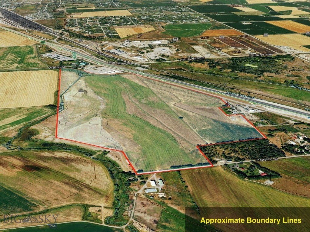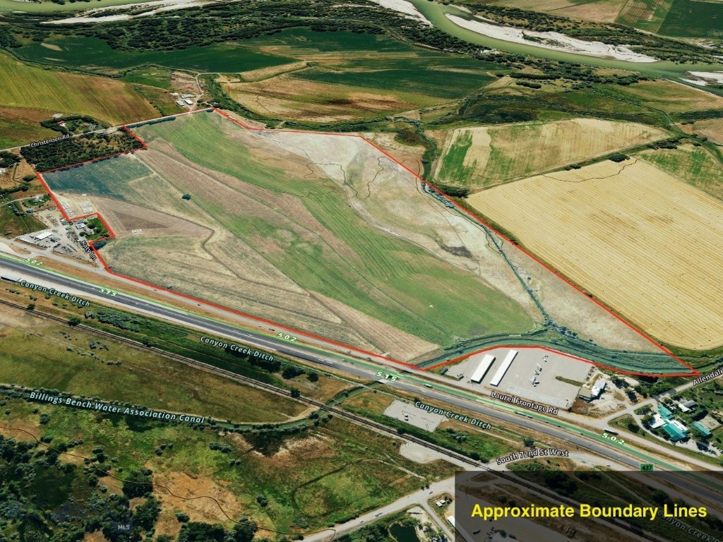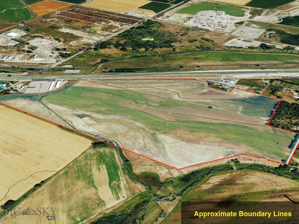 A rare opportunity to acquire 206 contiguous acres of agricultural land with exceptional development potential. Ideally situated just south of I-90 between Billings and Laurel, this expansive parcel offers excellent visibility an access from the I-90 South Frontage Road--positioning it as a strategic location for both commercial and residential development possibilities. The proximity to the Yellowstone River and major transportation corridors enhances its long-term appeal. Well-positioned for potential commercial development along the high-traffic frontage road, with additional possibilities for residential use on the remaining acreage. Interstate access ramp less than 1 Mile away from the property. There are no existing development plans or approvals in place, offering maximum flexibility to shape the site to fit your vision.